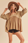 OATMEAL V NECK BLOUSE