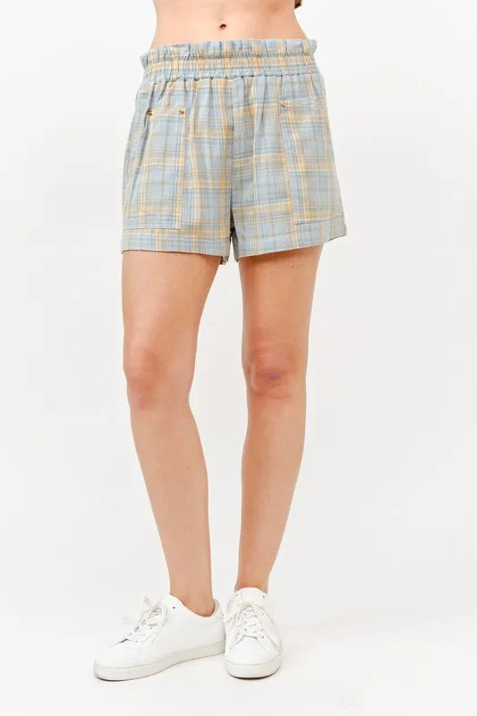 And The Why Plaid Print Smocked Detail Casual Shorts